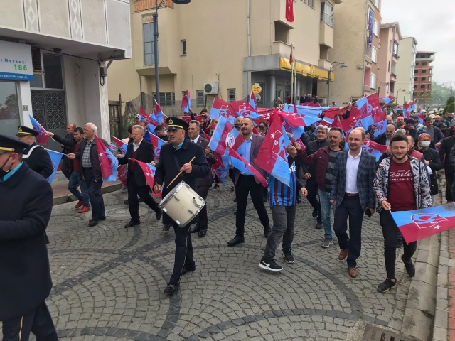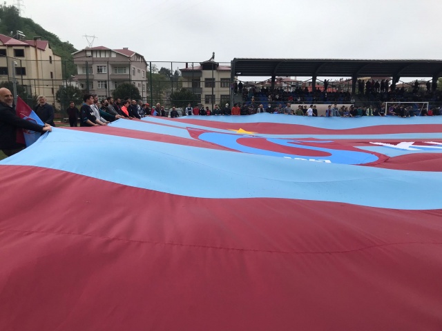 Çarşıbaşı İlçe Stadyumu’nda son bulan yürüyüşün ardından 350 kilogram ağırlığındaki bayrak yeşil sahada açıldı.