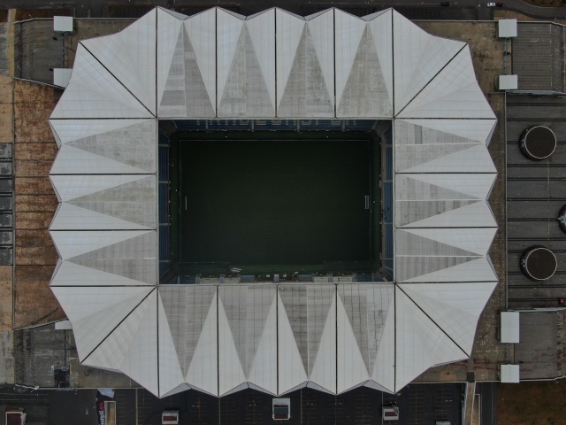 Kale direklerinin bağlı olduğu beton zeminin de hasar aldığı stadyum adeta sil baştan yeniden modernize edildi.
