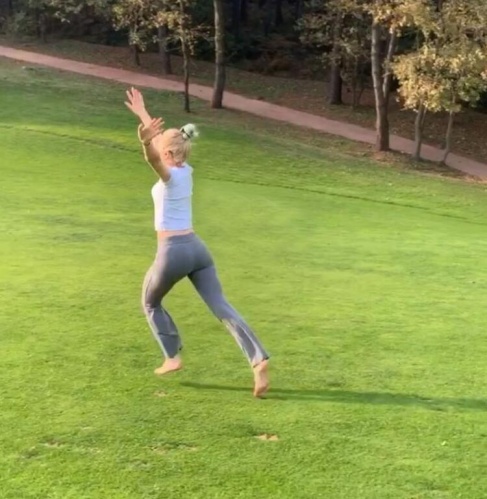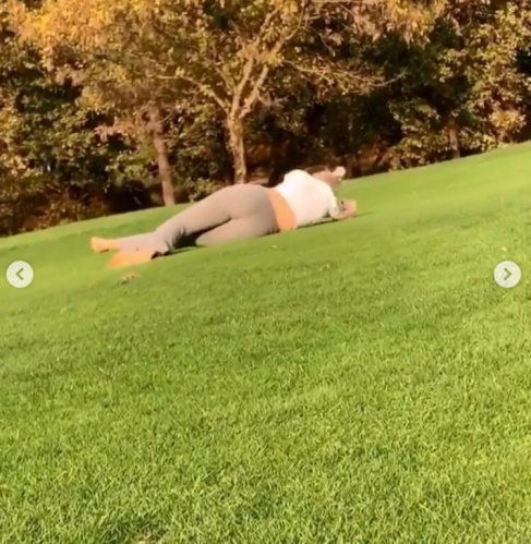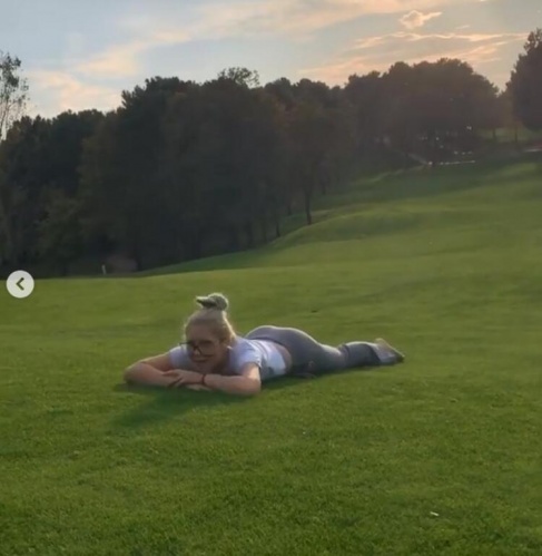 Aleyna Tilki, çimenlerde yuvarlanarak doyasıya eğlendiği videoları Instagram hesabından paylaştı.