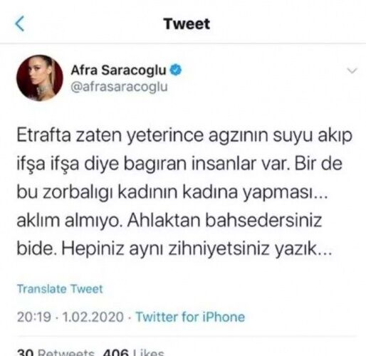 Afra Saraçoğlu: Etrafta zaten yeterince ağzının suyu akıp ifşa ifşa diye bağıran insanlar var. Bir de bu zorbalığı kadının kadına yapması... Aklım almıyor. Ahlaktan bahsedersiniz bir de...