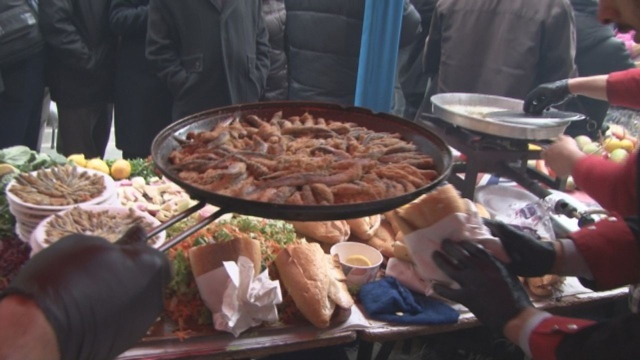 Ankara'da düzenlenen 'Doğu Karadeniz Hamsi Muhlama Şöleni'nde dağıtılan bedava ekmek arası hamsi ve muhlama için vatandaşlar birbirini ezdi.
