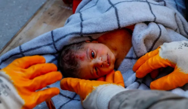 Reuters'tan Kemal Aslan paylaştığı fotoğraflara "8 Şubat 2023'te Hatay'da meydana gelen ölümcül depremin ardından enkazın altından kurtarılan 20 günlük Kerem Ağırtaş adlı erkek bebek bir kurtarıcı tarafından tutuluyor." notunu düştü. Bebeğin sağlık durumunun iyi olduğu da kaydedildi.