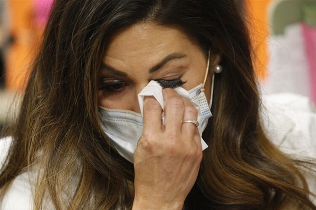 Corona virüs hastalarıyla temas edenleri takip eden ABD'li sağlık araştırmacısı Maria DiCaro, bir telefon görüşmesinin ardından maskeli yüzünde biriken terleri siliyor. Salt Lake City'deki görevliler, dil ve kültürel farklılıklar yüzünden hastalarla temasta bulunanları belirlemekte güçlük çekiyor.