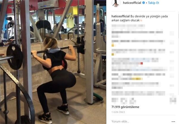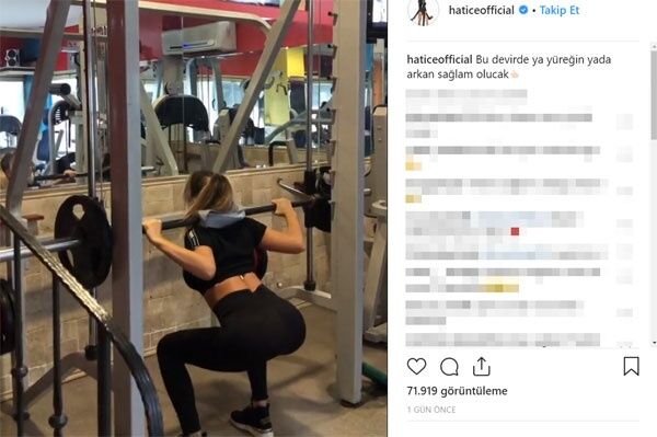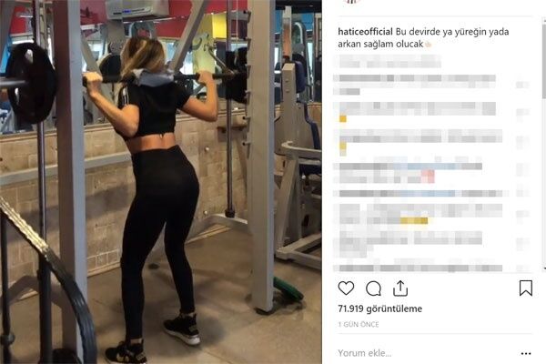 Hatice, ağırlık kaldırırken görüldüğü bir çalışması sırasında çekilen videosunu; “Bu devirde ya yüreğin ya arkan sağlam olacak” notuyla paylaştı.