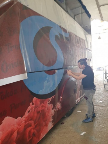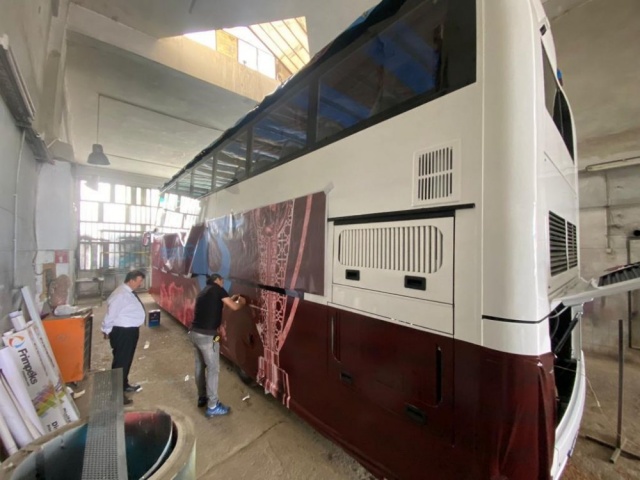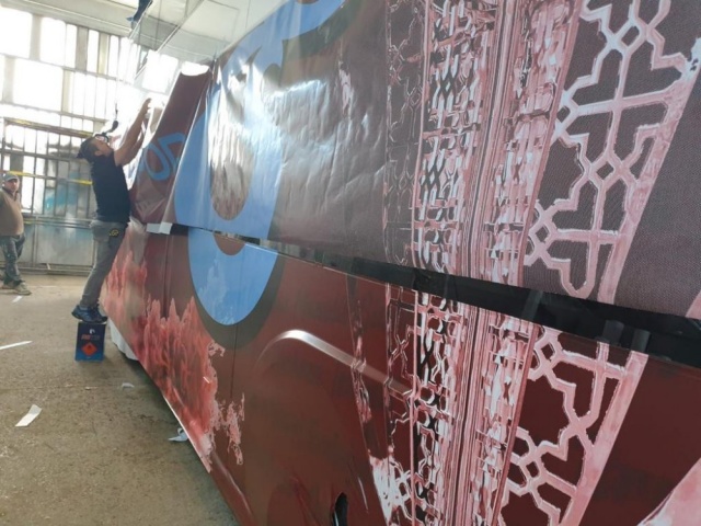 Bu hafta yetiştirilmesi beklenen otobüste motiflerin olduğu ve yarın itibariyle kaplamasının tamamlanacağı ifade edildi.