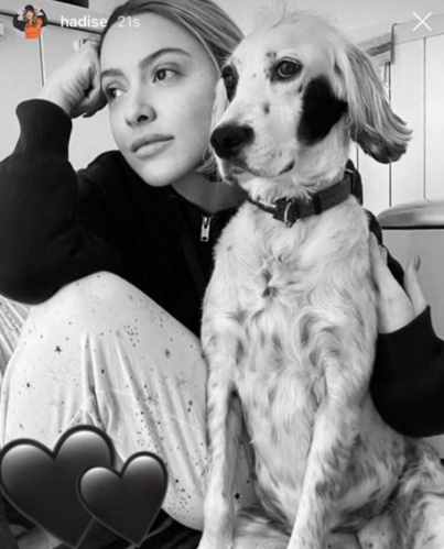 Hadise’nin Instagram hesabından kalp emojileri ile eklediği fotoğrafta yanında görülen köpeğin, Kaan Yıldırım’ın köpeği olduğu dikkatli takipçilerin gözünden kaçmadı.