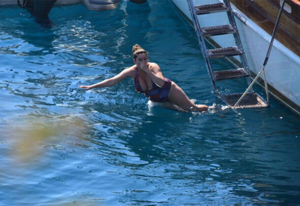 İngiliz TV yıldızı ve oyuncu Kelly Brook sevgilisi Jeremy Parisi ile Bodrum açıklarında tekne tatili yapıyor.