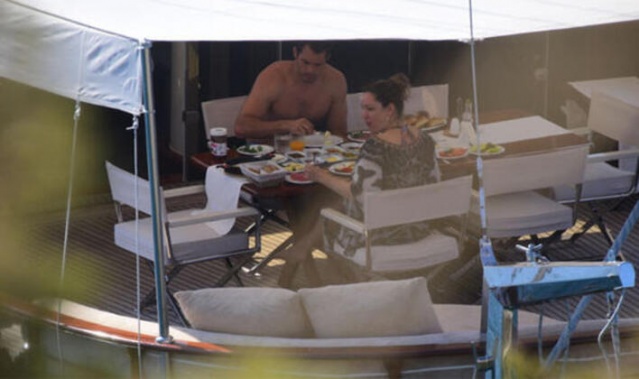 Çift önce denize girdi. Ardından kendileri için hazırlanan serpme kahvaltı yapıp Türk kahvesi içtiler.