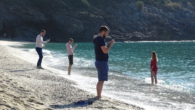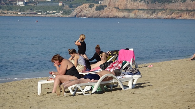 Hava sıcaklığının 20, nem oranının ise yüzde 63'leri gördüğü ilçede güneşli havayı fırsat bilen kısıtlamadan muaf turistler, soluğu dünyaca ünlü Kleopatra, Keykubat ve Damlataş plajlarında aldı.