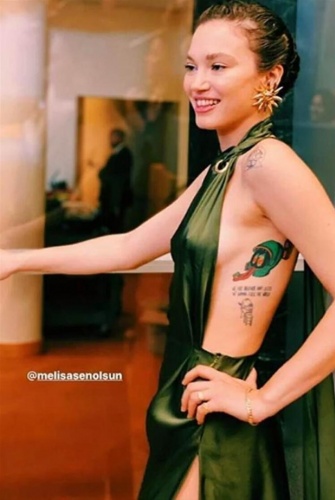 Yeşil saten bir elbise tercih eden Melisa Şenolsun; açık sırtı ve derin yırtmacıyla sosyal medyada gündem oldu. Bazı takipçileri, oyuncuya bu elbisenin çok yakıştığını söylerken bazıları da "Adı elbise" diyerek ,Şenolsun'un seçimini eleştirdi.