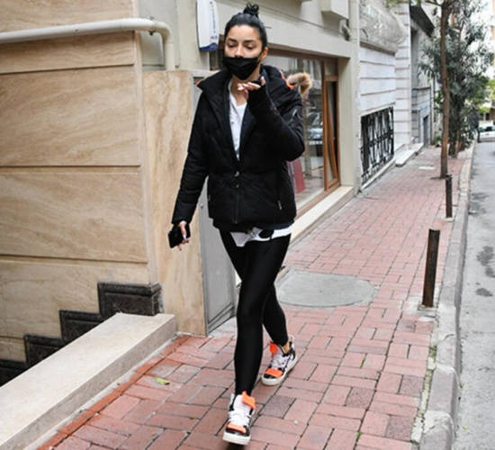 Tek başına yürüyen 33 yaşındaki oyuncunun, bu kez maskesiyle sokağa çıktığı ancak maskeyi doğru şekilde takmadığı görüldü.
