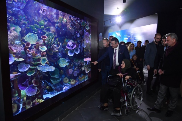 Daha önce hiç görmediği okyanus canlılarını ilk kez gördüğünü belirten Aysel Karaca, "Çok mutlu olduk, Allah razı olsun bu imkanı bize verdikleri için. Evden dışarı çıkamıyorum, rahatsızım. Daha önce hiç görmediklerimi burada gördüm, çok teşekkür ederiz" diye konuştu.