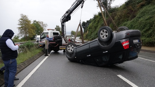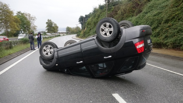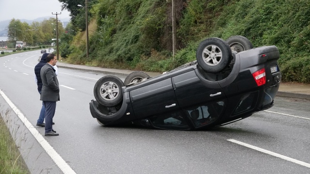 Kaza, Akçaabat ilçesinin Salacık mahallesinde bu sabah meydana geldi. Alınan bilgiye göre, Giresun’dan Trabzon istikametine gitmekte olan Recep Aydın yönetimindeki 28 TB 258 plakalı otomobil, yağmur nedeniyle kayganlaşan yolda sürücüsünün direksiyon hakimiyetini kaybetmesi sonucu kaldırıma çarparak takla attı. Takla atarak ters dönen otomobil yaklaşık 20 metre sürüklendi.