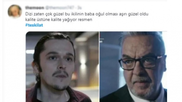 "Dizi zaten çok güzel, bu ikilinin baba-oğul olması aşırı güzel oldu. Kalite üstüne kalite yağıyor resmen."
