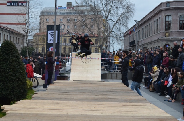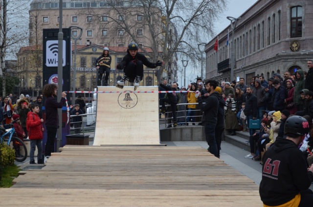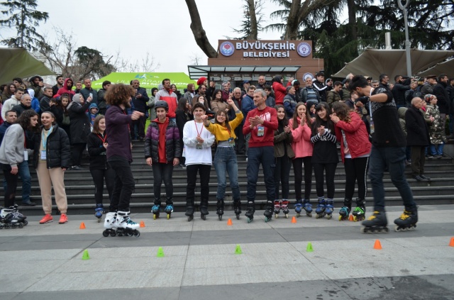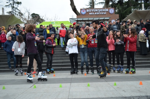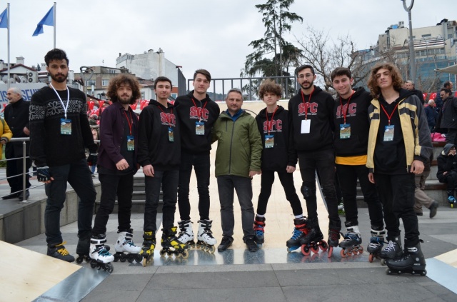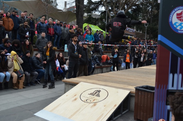 Trabzon’un kurtuluşunun 102.yıl dönümü kapsamında düzenlenen geniş çaplı organizasyonda yer alan Trabzon Paten Kulübü fark yarattı. Az yağışlı Trabzon havasına rağmen agresif gösteri yapmaktan vazgeçmeyen tekerlekli paten sporcuları alkışlandı.
