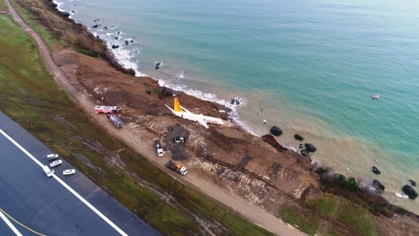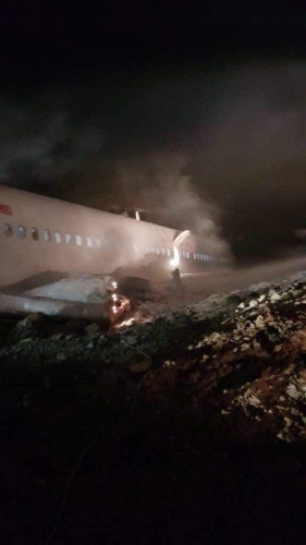 Trabzon'da pistten çıkan uçak günün ağarmasıyla böyle görüntülendi
