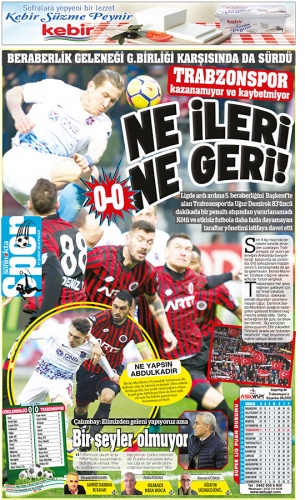 Yerel gazeteler, Süper Lig’in 21’inci haftasında deplasmanda Gençlerbirliği ile de berabere kalarak galibiyet hasretine 5 maça çıkaran Trabzonspor’a ve yönetimine tepki gösterdi.