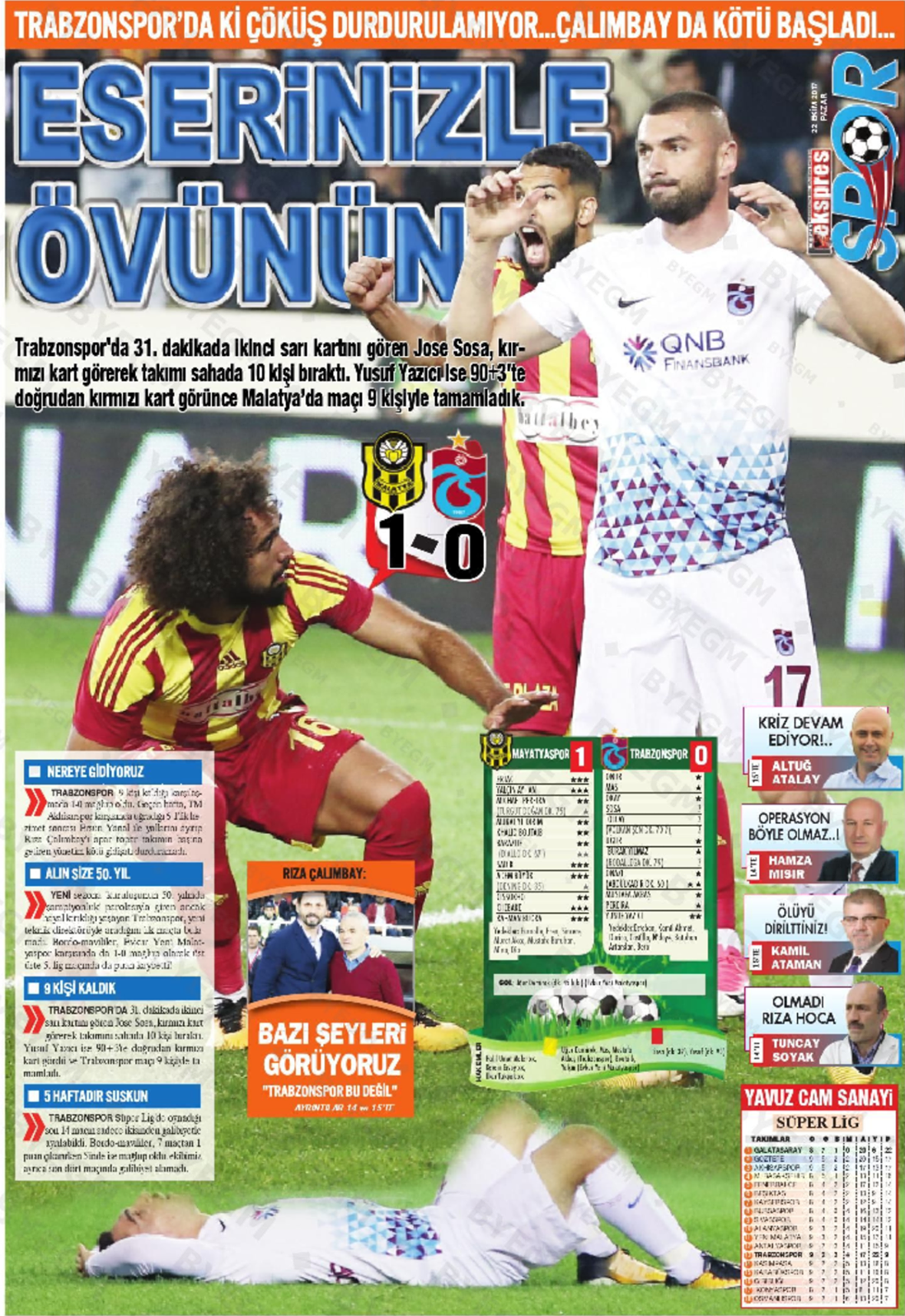 Trabzon gazeteleri Malatyaspor - Trabzonspor maçını böyle yorumladı