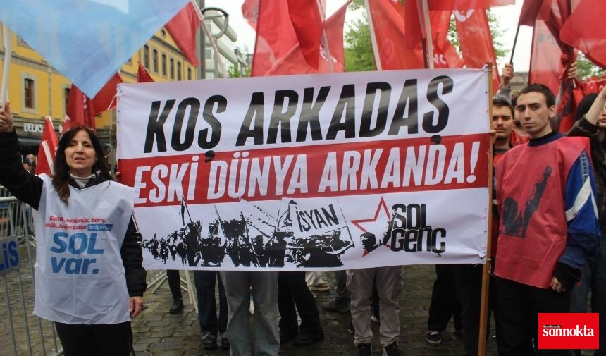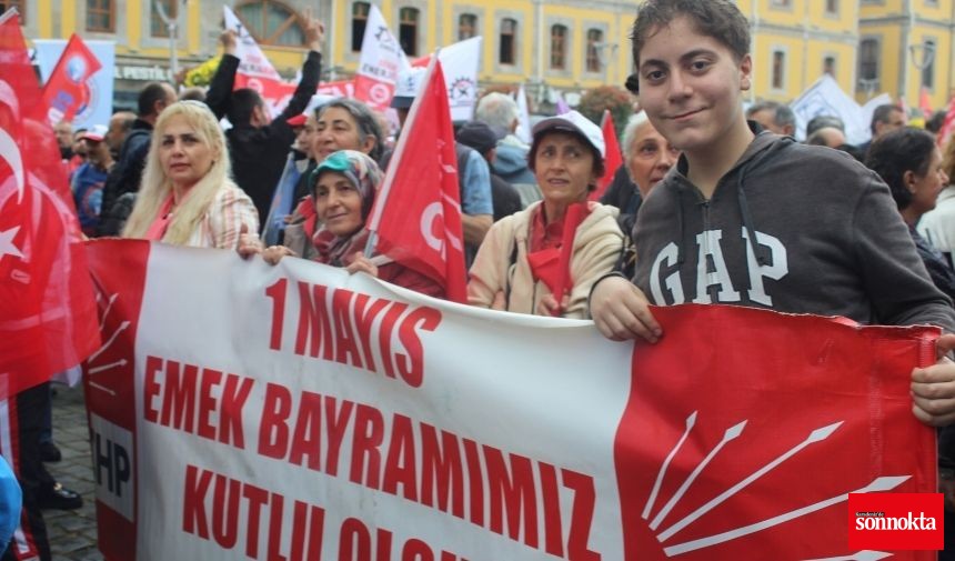 1 Mayıs kutlamaları çerçevesinde Kahramanmaraş Caddesi'nde toplanan grup, ellerinde bayraklarla 15 Temmuz Şehitler ve Hürriyet Parkı’na yürüdü.