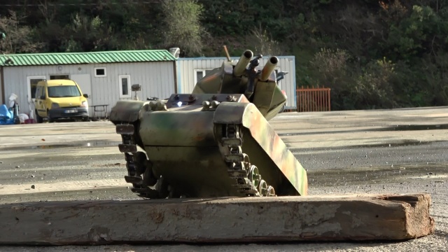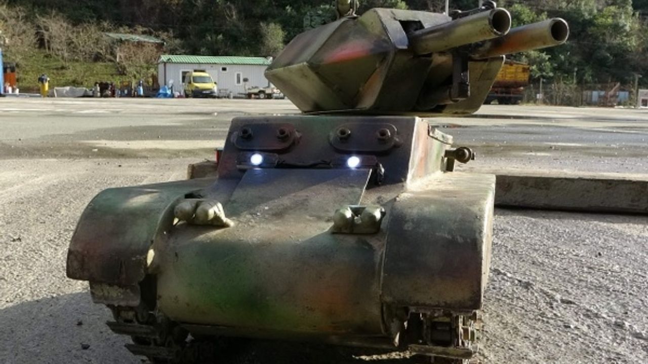 Trabzonlu Hasan Altuntaş, çöpe atmak yerine biriktirdiği hurda parçaları ile mini bir tank yaptı. Tankın içine ateşleme sistemi yerleştiren makine tamircisi Altuntaş, kumanda ile hareket eden ve gerçeğinden tek farkı boyutu olan tankıyla beğeni topluyor.