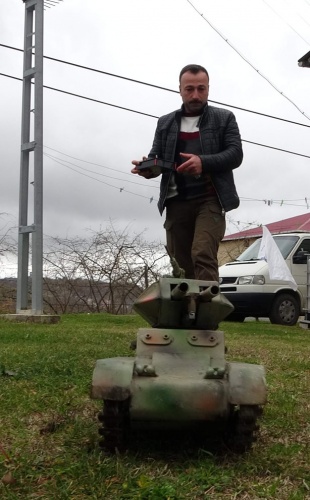 Mesela kepçe, kamyon bu tarz bir şeyler yapmayı düşündüm. Daha sonra internetten araştırdığımda bunların hep yapıldığını ancak tankın olmadığını gördüm. Bende tank yapmaya karar verdim. Tamamen el işçiliği çekiç kullanarak yaptığım bir çalışma. Tankı yaptıktan sonra bunun ateş etmesi lazım dedim. İçerisine ateşleme düzeneği yerleştirdim. İlk başta gerçek mermi atmasını planlıyordum ancak sonradan kazalara sebebiyet verir diye kurusıkıya çevirdim.