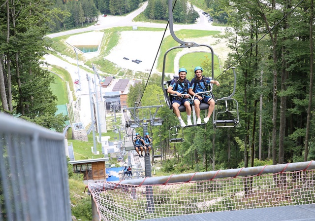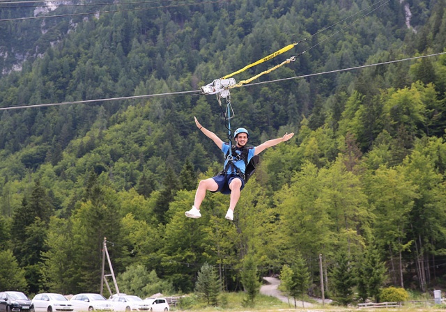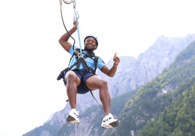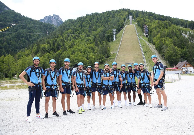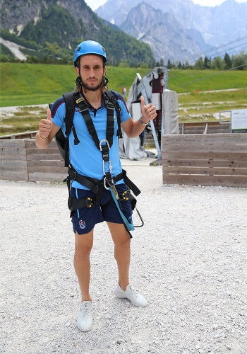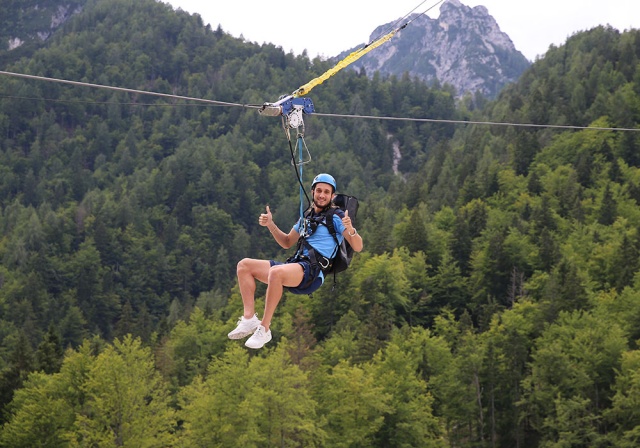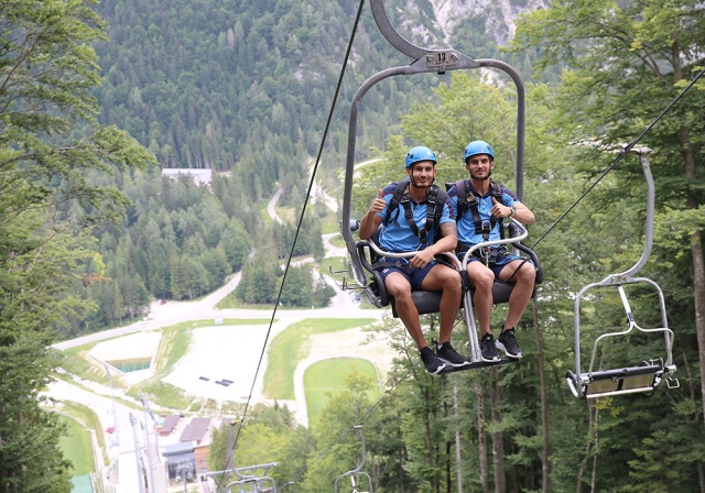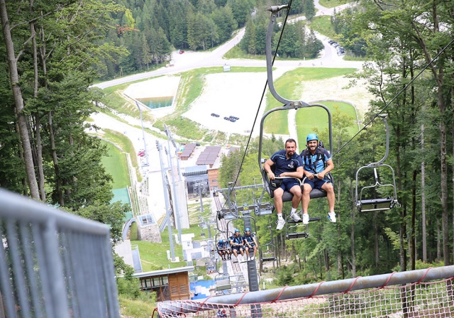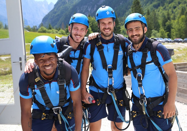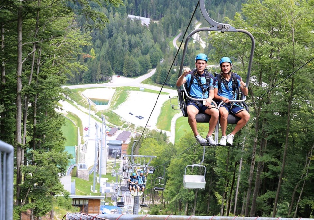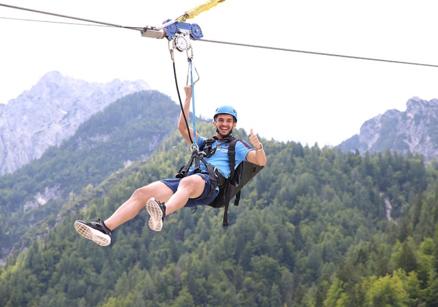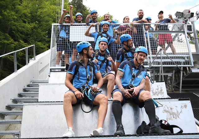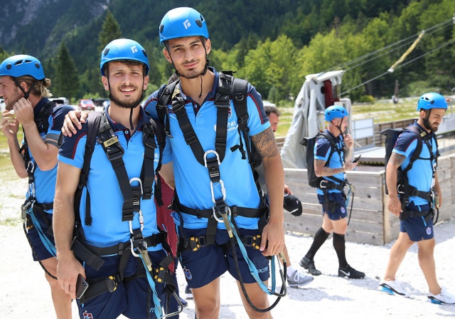 Yemeğin ardından teleferikle tesisin zirvesine çıkan oyuncular Zipline’e bindi.