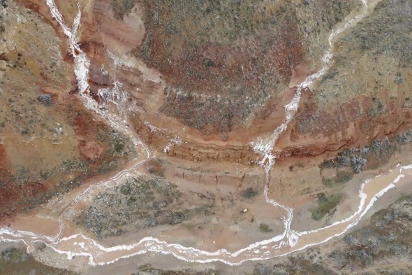 Yaklaşık günlük olarak 200 bin litre kadar su aktığını belirten Gözüyukarı, “Bunun gibi birkaç noktadan akıyor. Bunları doğal havuzlarda kurutarak tuz haline getiriyoruz. Tuza doymuş bir şekilde akıyoruz.