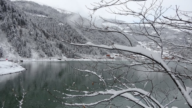 Trabzon’un Çaykara ilçesine bağlı doğal güzellikleri ile ünlü Uzungöl, şiddetli soğuklar ve kar yağışı sonrası kısmen dondu.