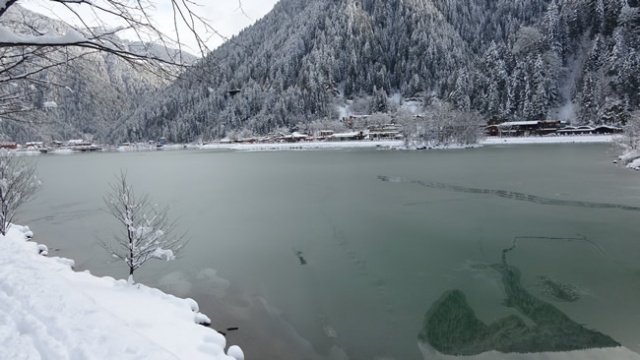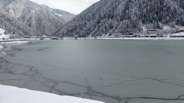 Türkiye'nin en önemli turizm merkezleri arasında yer alan Trabzon'un Çaykara ilçesi sınırları içindeki Uzungöl, Doğu Karadeniz Bölgesi'nde etkili olan soğuklar ve kar yağışı sonrası kısmen dondu.