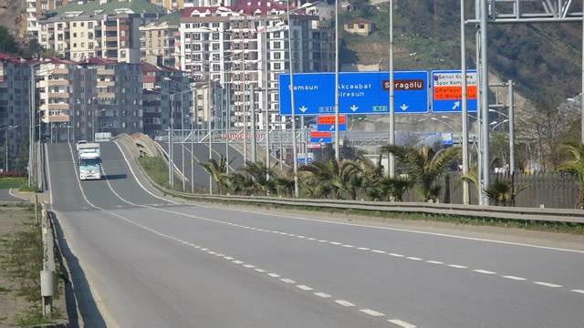 Sokağa çıkma yasağının uygulandığı 30 büyükşehirden biri olan Trabzon'da Karadeniz Sahil Yolu ve şehrin işlek noktaları havadan görüntülendi