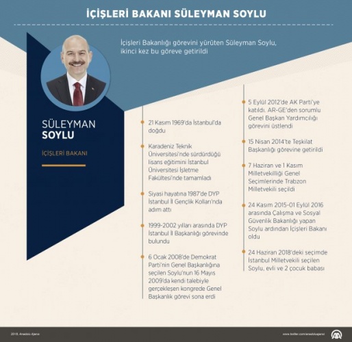 İçişleri Bakanlığı görevini yürüten Süleyman Soylu, ikinci kez bu göreve getirildi.