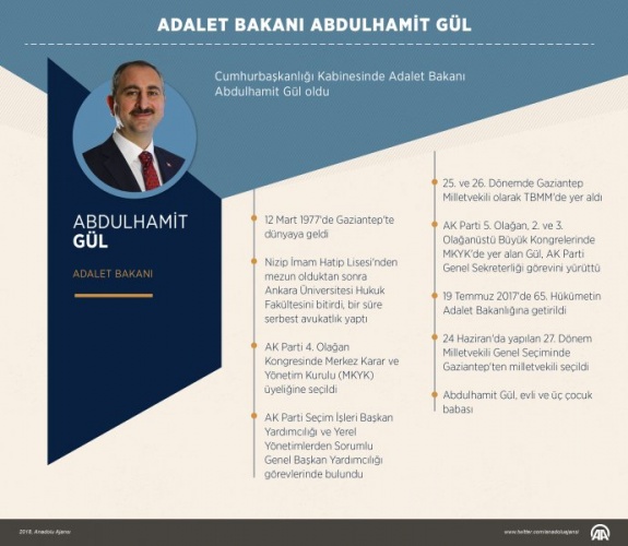Cumhurbaşkanlığı Kabinesinde Adalet Bakanı Abdulhamit Gül oldu.