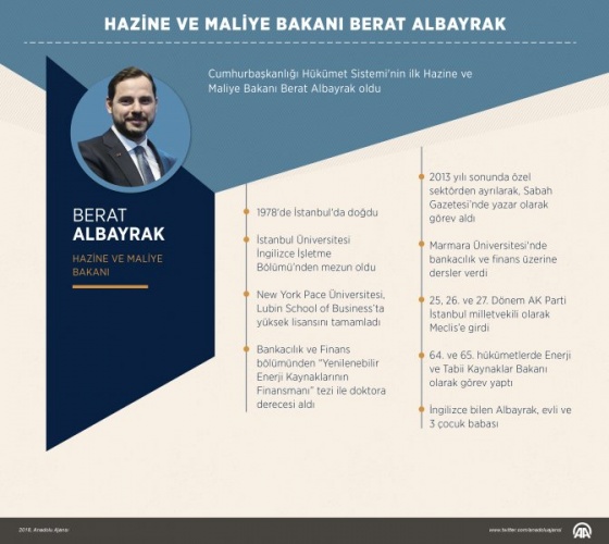 Cumhurbaşkanlığı Hükümet Sistemi'nin ilk Hazine ve Maliye Bakanı Berat Albayrak oldu.