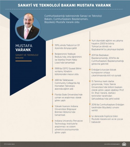 Cumhurbaşkanlığı kabinesinde Sanayi ve Teknoloji Bakanı, Cumhurbaşkanı Başdanışmanı Mustafa Varank oldu.
