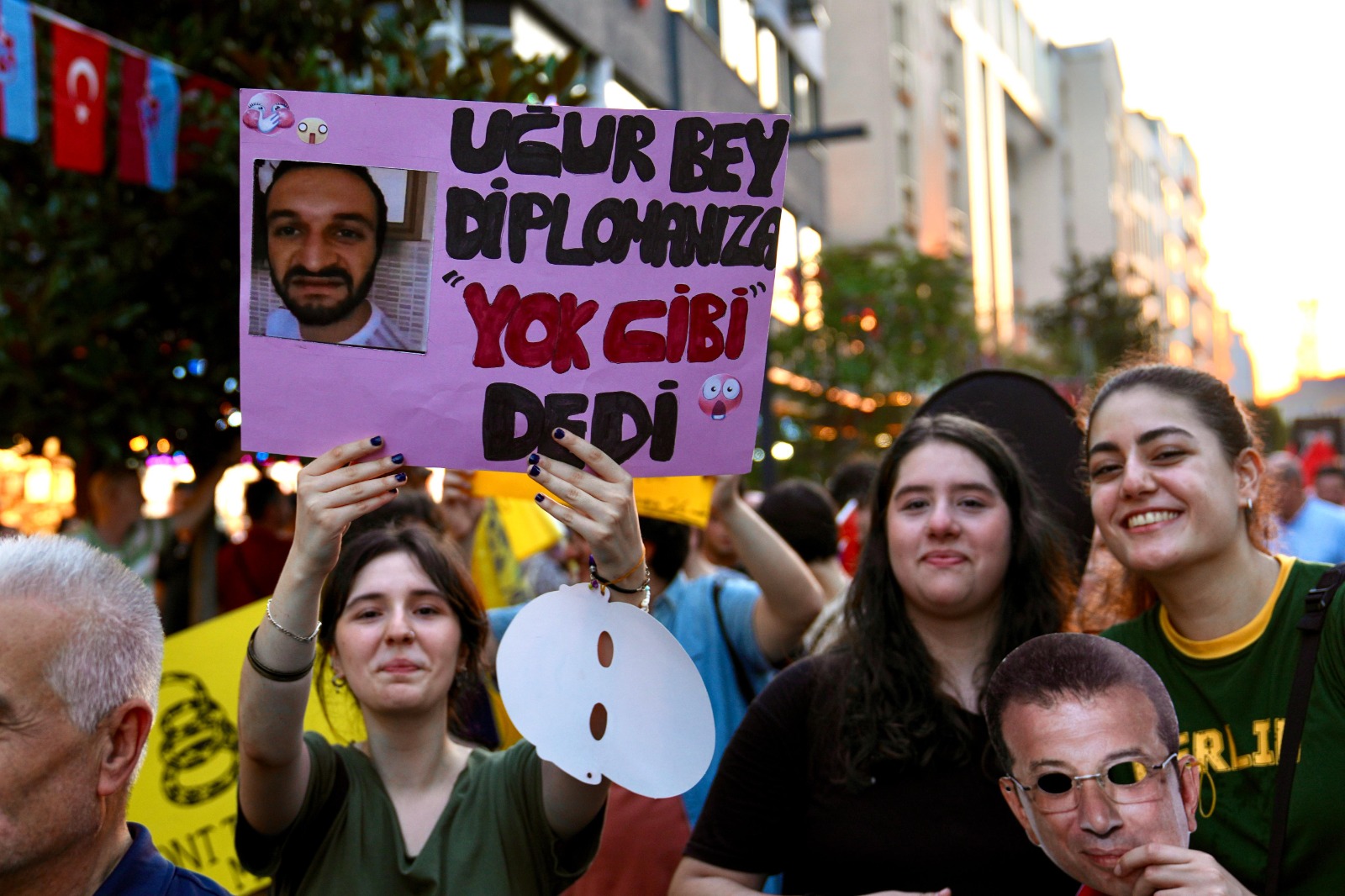 CHP Gençlik Kolları üyeleri, 19 Mart operasyonlarında tutuklanan Ekrem İmamoğlu, Mehmet Murat Çalık, Hasan Akgün, Fatih Keleş, Ali Rıza Akyüz, Ahmet Şahin, Gürkan Akgün, Yiğit Oğuz Duman, Arif Gürkan Alpay, Tuncay Tolga Özçakmak, Hakan Karanis, Rıza Can Özdemir ve Yavuz Saltık’ın fotoğraflarının bulunduğu dövizlerle alana gelerek özgürlük çağrısı yaptı.