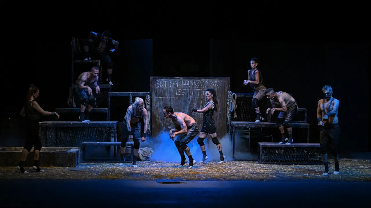 İzmir Enternasyonal Fuarı’nın kültür-sanat alanındaki önemli duraklarından Atatürk Açık Hava Tiyatrosu’nun bu yılki etkinlikleri Oyun Atölyesi’nin “Hayvan Çiftliği” oyunu ile başladı.İZMİR (İGFA) - İzmir Enternasyonal Fuarı’nın kültür-sanat alanındaki önemli duraklarından Atatürk Açık Hava Tiyatrosu, bu yılki etkinliklerine Oyun Atölyesi’nin “Hayvan Çiftliği” oyunuyla merhaba dedi. George Orwell’in klasik eserinden tiyatroya uyarlanan yapım, günümüz siyasetlerine ışık tutan evrensel temalarıyla izleyiciden yoğun ilgi gördü.