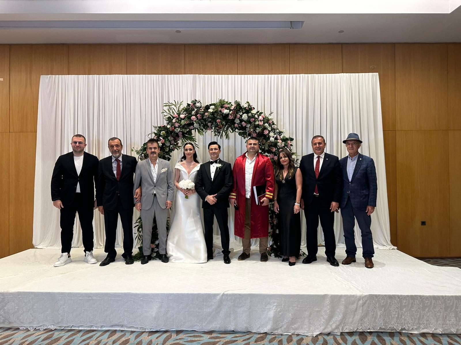 Trabzonspor’da bir dönem avukatlık yapan ve şehirde sevilen simalardan olan İsmail Kaynar, mutlu gününde dostları ve sevenleri tarafından yalnız bırakılmadı. TTSO Başkanı Erkut Çelebi, evlilik cüzdanını gelin Gözde Yılmaz’a takdim ederek çiftin mutluluğunu diledi.