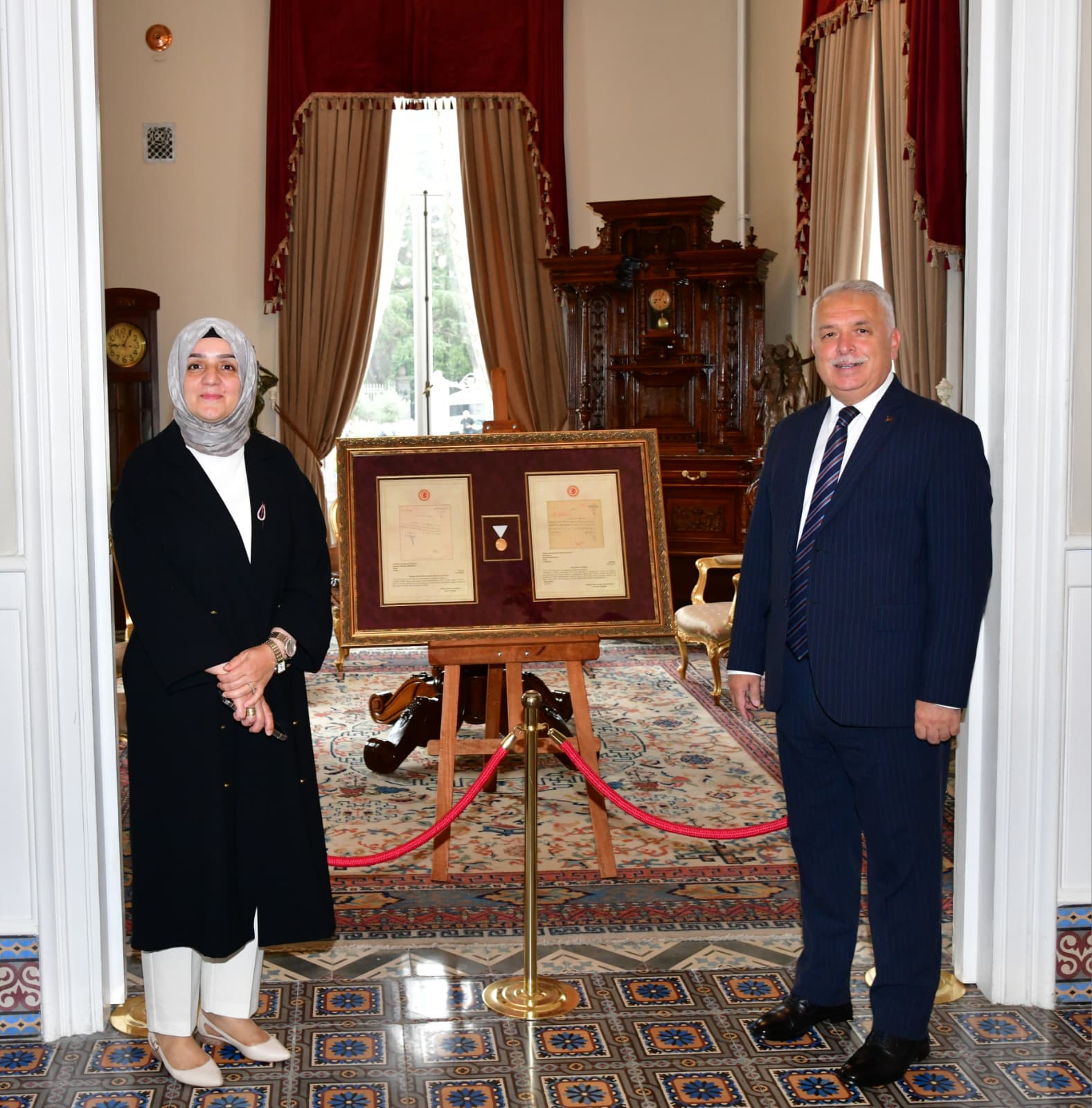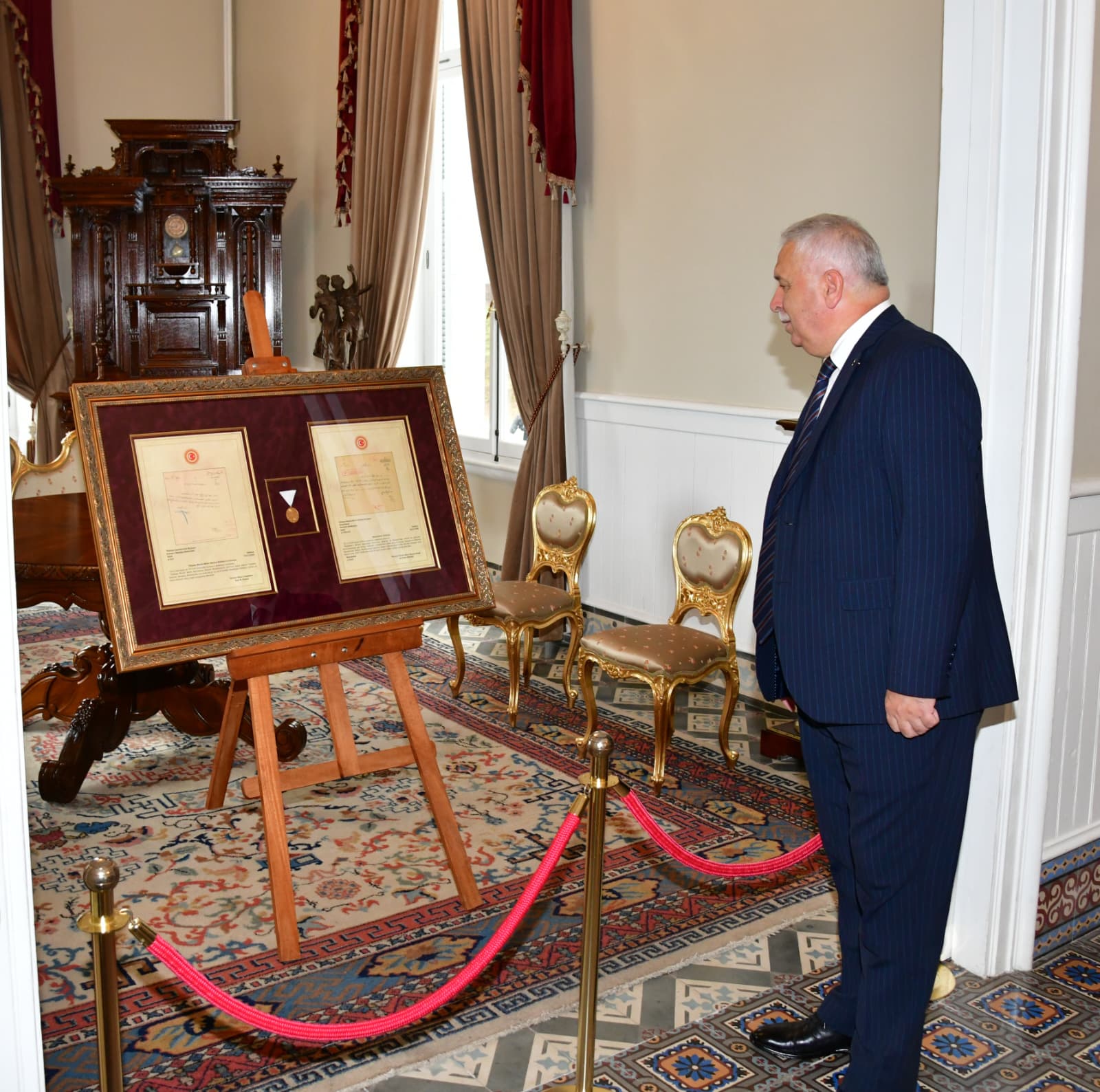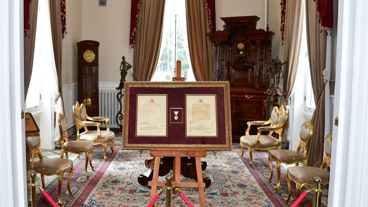 Eşi Güllühan Yıldırım Hanımefendi ile birlikte Atatürk Köşkü’nü ziyaret eden Trabzon Valisi Aziz Yıldırım, “Millî Mücadele’de Karadeniz’in hırçın dalgalarını aşarak cepheye silah ve mühimmat taşıyan kahraman ecdadımızın gurur nişanesi olan İstiklal Madalyası ve Beratı, Atatürk Köşkü'nde 1 Eylül’e kadar halkımızın ziyaretine açık olacaktır" dedi.