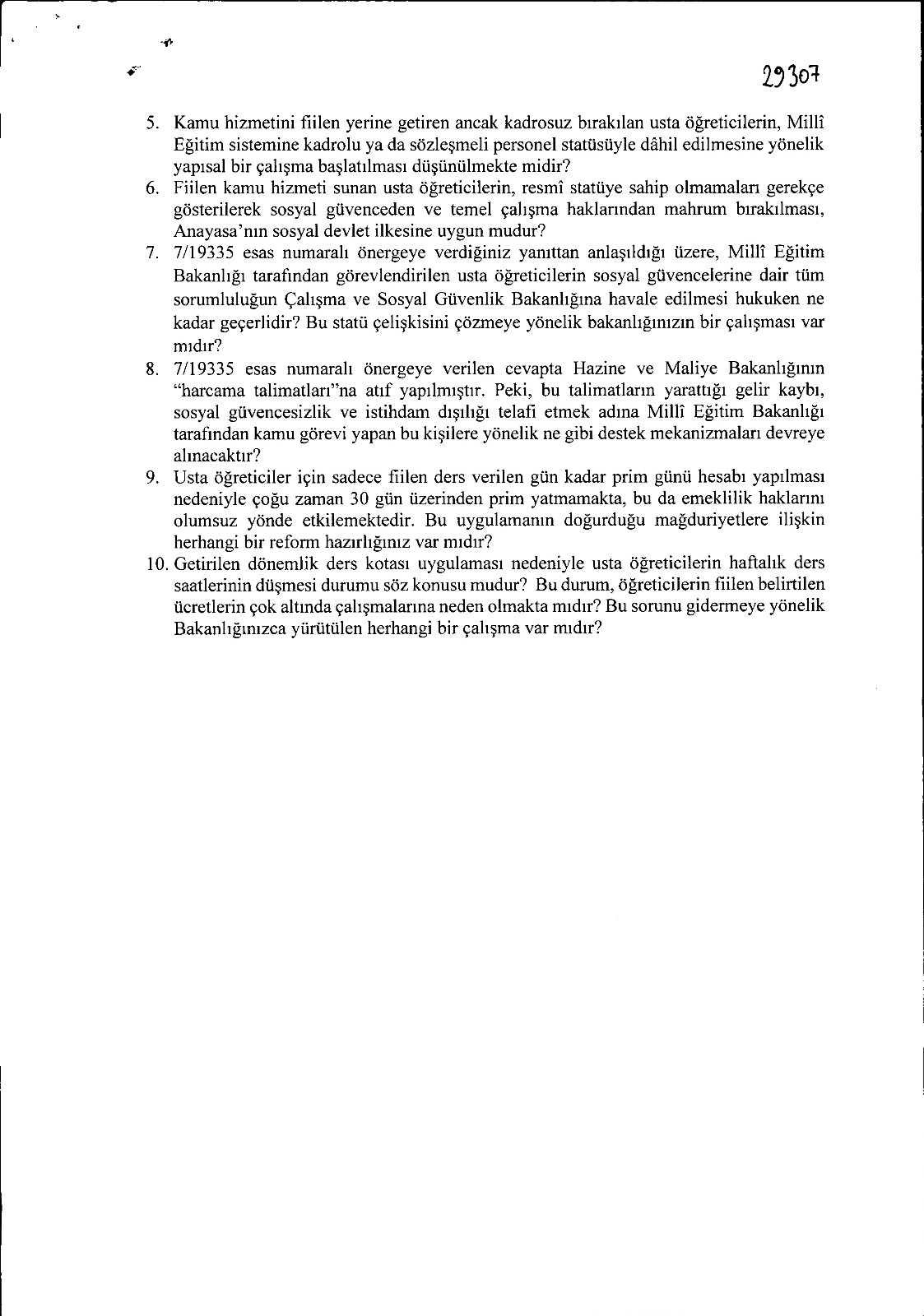 Millî Eğitim Bakanı Yusuf Tekin’in yazılı olarak yanıtlaması istemiyle hazırlanan ve 10 maddeden oluşan soru önergesinde Aydın “Fiilen kamu hizmeti sunan binlerce usta öğretici, resmî statüye alınmaksızın sosyal devletten dışlanmaktadır.” dedi.