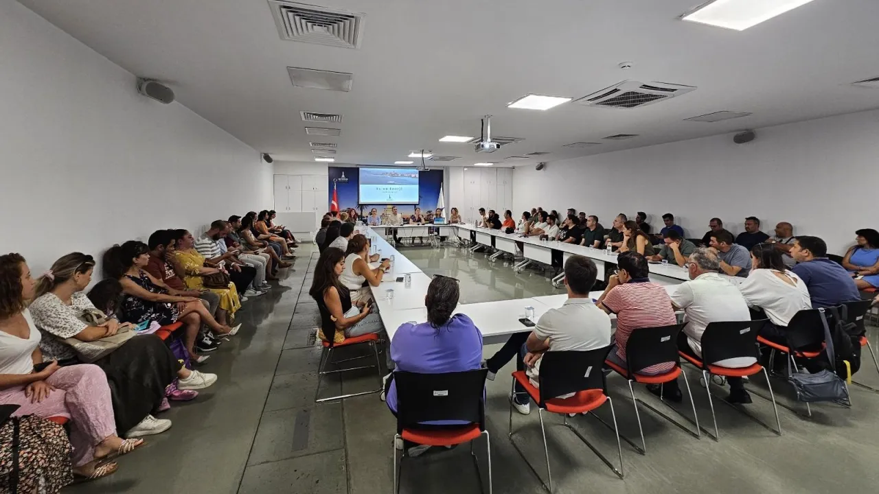 Eğitim verildi İzmir Büyükşehir Belediyesi İklim Değişikliği ve Sıfır Atık Dairesi Başkanlığı İklim Değişikliği ve Temiz Enerji Şube Müdürlüğü’nün kurum içi ve ilçe belediyelerine yönelik düzenlediği eğitimlerden biri de Kültürpark 1 No’lu Hol’deki Çetin Emeç Toplantı Salonu’nda oldu. “Su ve Enerji Yönetimi” başlıklı eğitimde iklim değişikliği ve enerji alanında yapılan çalışmalar, İzmir Büyükşehir Belediyesi’nin “Su ve Enerji Kaynakları Kullanım Talimatnamesi ve tasarruf konuları ele alındı.