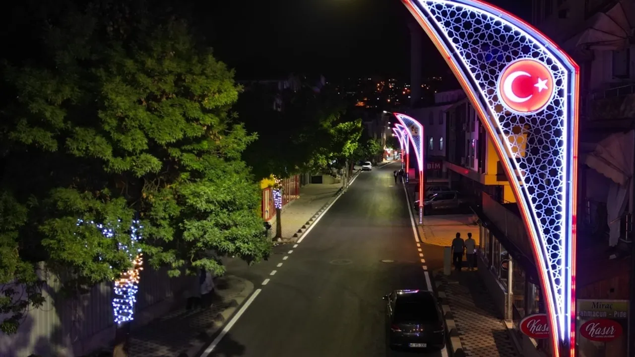 İzmit'te Atatürk Motifli aydınlatmalar caddeyi aydınlattı