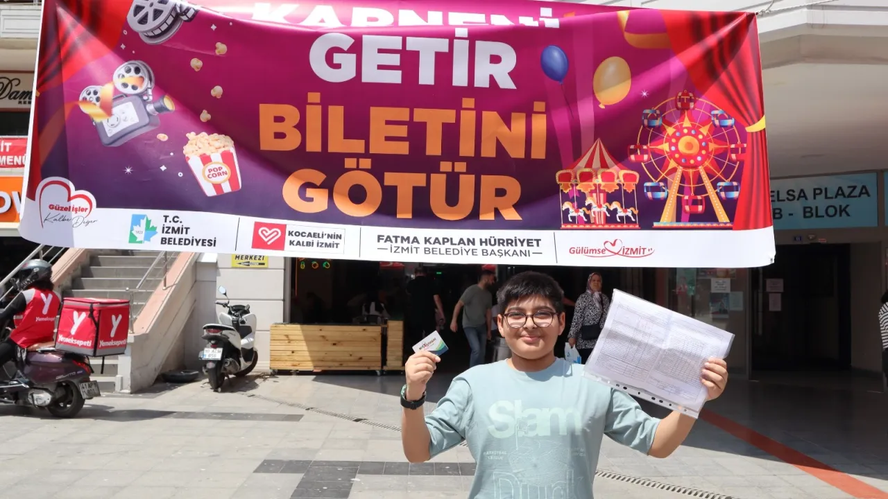 İzmit Belediyesinin karne hediyesi etkinliği “Karneni Getir, Biletini Götür!”, öğrencilerden yoğun ilgi görüyorKOCAELİ (İGFA) - İzmit Belediyesinin karne hediyesi olarak düzenlediği “Karneni Getir, Biletini Götür!” etkinliği, öğrencilerden büyük ilgi gördü. Yaz tatiline coşkulu bir başlangıç yapmak isteyen çocuklar sabahın erken saatlerinden itibaren Belsa Plaza B Blok önünde uzun kuyruklar oluşturdu.