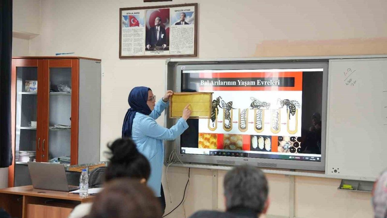 DÜZCE(İHA) – Düzce’de TOBB Düzce Kadın Girişimciler Kurulu ile Tarım ve Orman Müdürlüğü tarafından düzenlenen Tarımda Kadın Eli Projesi kapsamında kadınlara arıcılık eğitimi verildi.