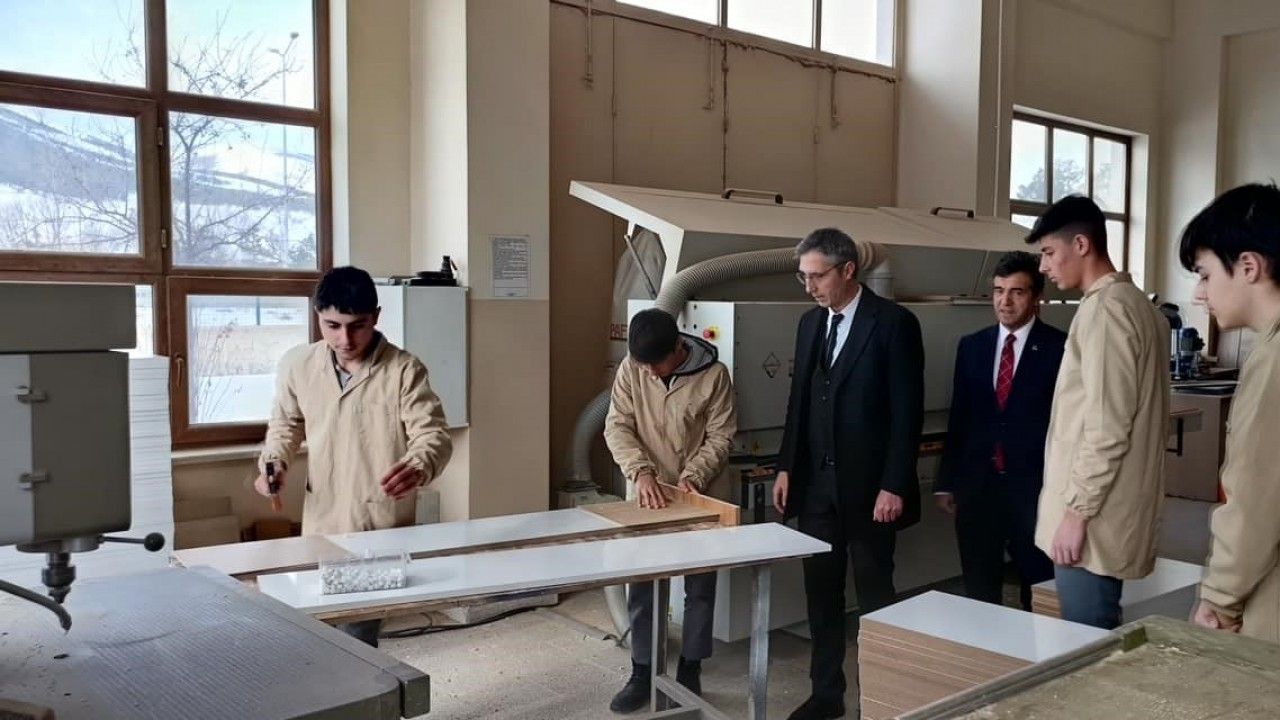 Bayburt İl Milli Eğitim Müdürü Ömer Faruk Kahraman Mesleki ve Teknik Anadolu Lisesi okuluna ziyarette bulunarak, atölye çalışmalarını yerinde inceledi.