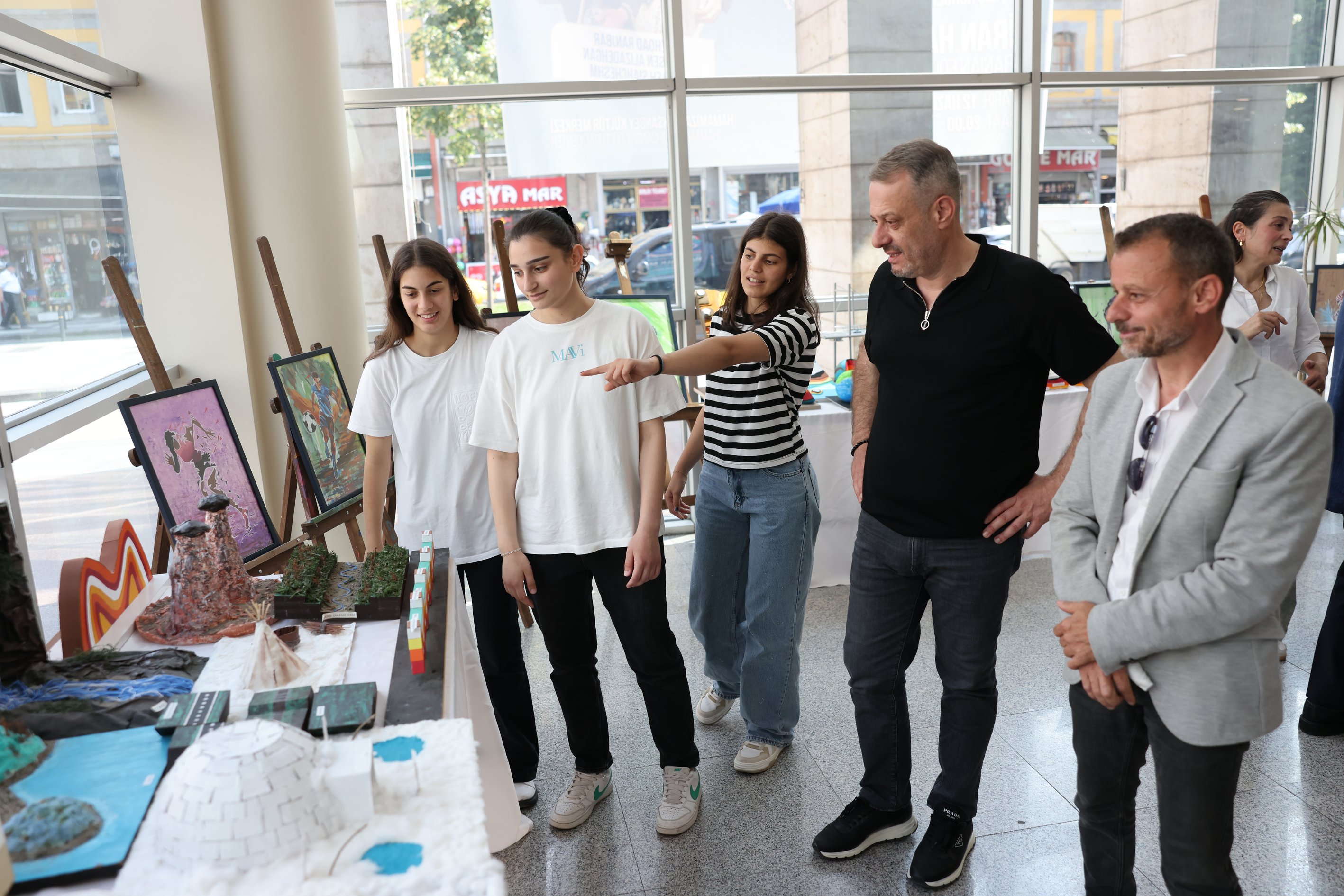 Karaman ve Köz, sergiye gösterilen özen ve öğrencilerin eserlerinden duydukları memnuniyeti dile getirerek, sergiye katkı sunan öğrencilere forma armağan etti.