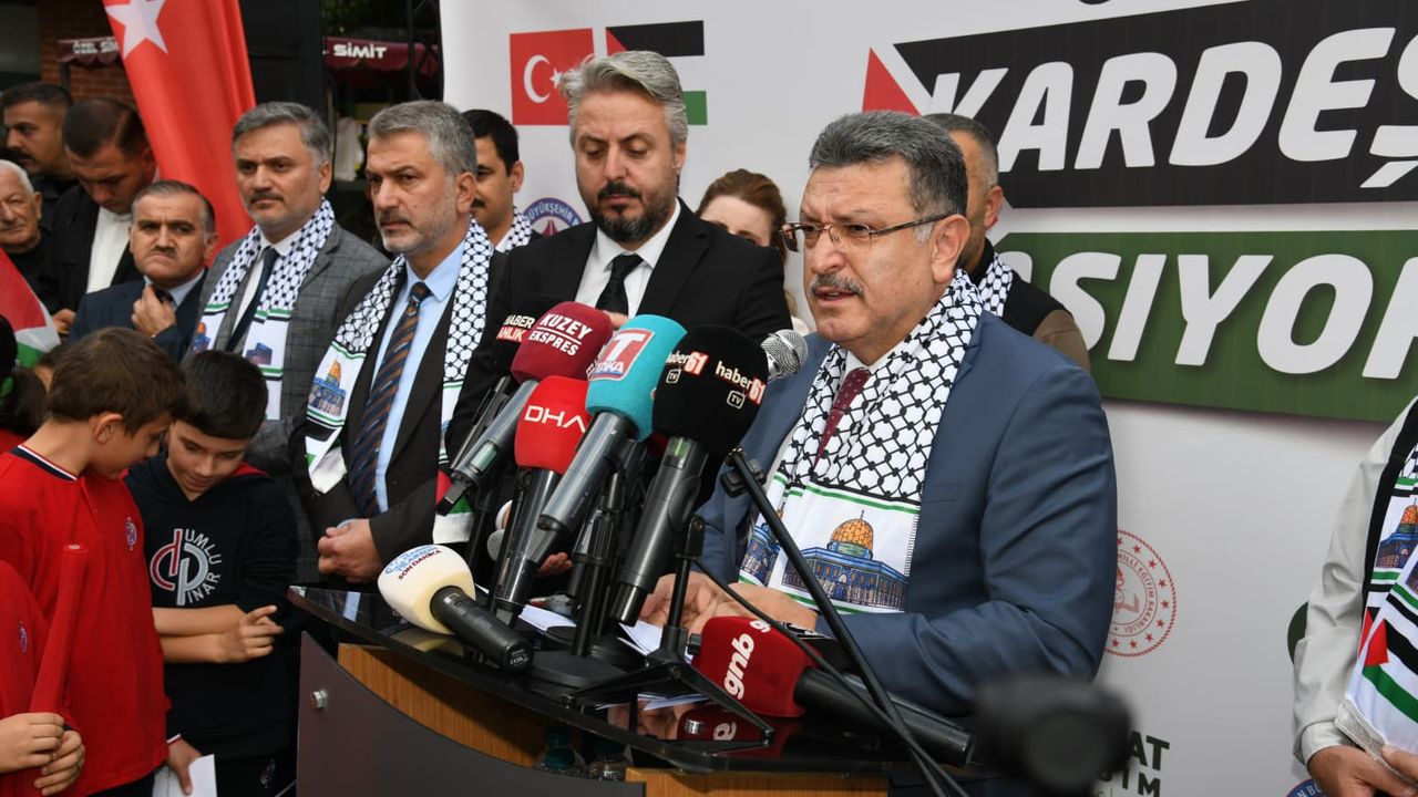 Büyükşehir Belediye Başkanı Ahmet Metin Genç, “Gazze’deki kardeşlerimize el uzatmak ve onların yanında olmak için toplandık. Beraber projeyi icra ettiğimiz Hayrat İnsani Yardım Derneği’mize ve değerli yöneticilerine ayrıca teşekkür ediyorum. Allah razı olsun. İki yıldır barbar İsrail devletinin vahşet ve soykırımına maruz kalan, zulmü altında olan Gazze’deki kardeşlerimiz acı çekiyor. 68 bini aşkın kardeşimiz hayatını kaybetti, 100 bini aşkın kardeşimiz yaralı. Büyük bir yıkım ve felaket var. Günün sonunda insanlık vicdanı ortaya çıktı. Bütün insanlık adına ortaya koyulan irade esas alınarak bir ateşkes süreci başlatıldı. Bu süreçle beraber Sayın Cumhurbaşkanımız Recep Tayyip Erdoğan’ın ortaya koyduğu diplomatik temaslar, çalışmalar ve gayretler ile en sonunda BM zirvesinin sonucunda şu anda ateşkes sağlanmış durumda. Dileğimiz ve duamız kalıcı bir ateşkes süreci olması. Aynı zamanda bağımsız, özgür bir Filistin ve Kudüs" dedi.