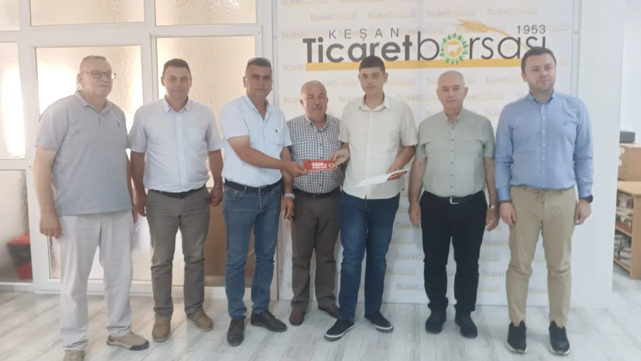 Keşan Ticaret Borsası, 2025 yılının ilk buğday hasadını satışa sundu. 16 yaşındaki genç çiftçi Fatih Doğan’ın ürünü, düzenlenen salon satışında Topaloğlu Zahirecilik tarafından 13,50 TL’den satın alındı.Erdoğan DEMİR / EDİRNE (İGFA) - Edirne'nin Keşan ilçesinde 16 yaşındaki genç çiftçi Fatih Doğan’ın hasat ettiği 2025 yılının ilk buğdayı, Keşan Ticaret Borsası’nda düzenlenen törenle 13,50 TL’den satıldı.
