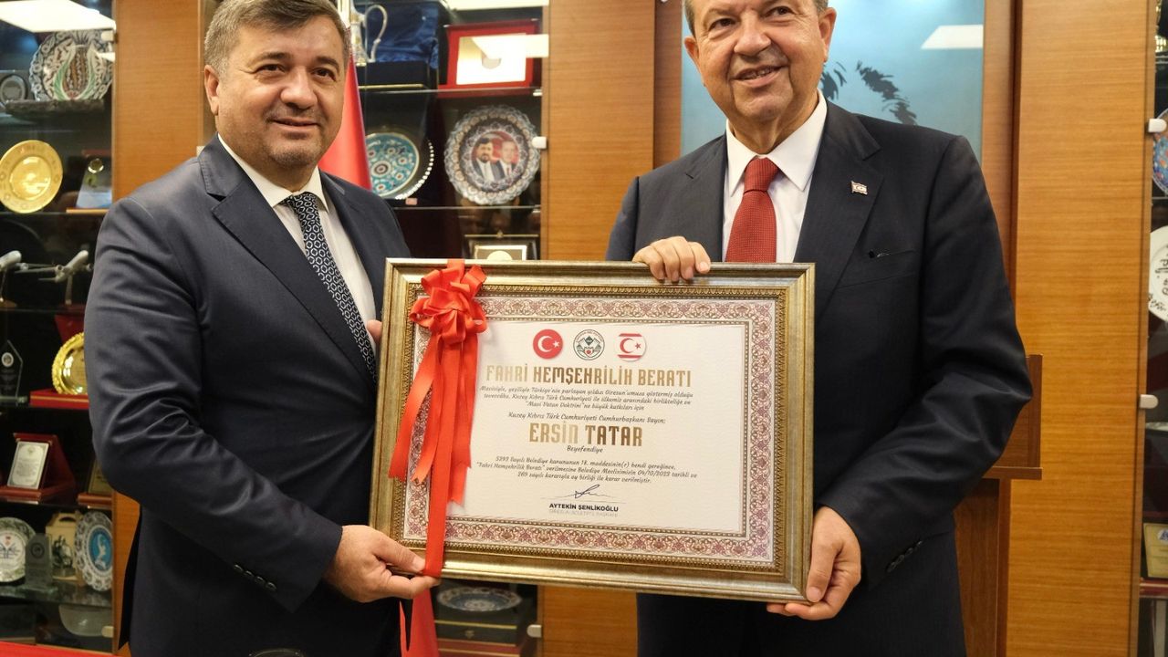 Giresun Belediye Başkanı Aytekin Şenlikoğlu’nun berat takdimi sonrası basın mensuplarına açıklamalarda bulunan Tatar, Giresun’a gelmekten ve kendisine gösterilen ilgiden duyduğu memnuniyeti dile getirdi. Tatar “Giresun’a gelmekten dolayı çok mutluyum. Böyle bir karşılama ile ağırladığınız için hepinize yürekten teşekkür ediyorum. Hepinize Kuzey Kıbrıs Türk Cumhuriyeti’nden getirdiğim selamı iletiyorum sizlerle paylaşıyorum” dedi.