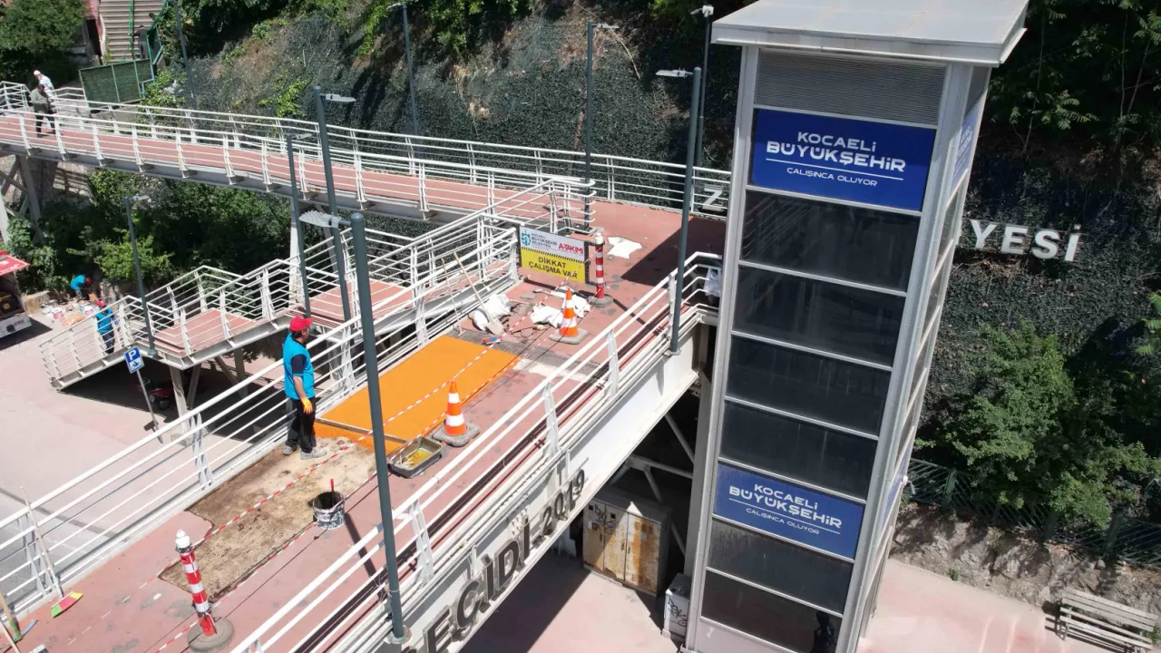 Kocaeli Büyükşehir Belediyesi, İzmit Yenidoğan üst geçidinin zemin kaplamasını değiştirerek, yayaların daha güvenli ve konforlu geçişlerini sağladı.KOCAELİ (İGFA) - Kocaeli Büyükşehir Belediyesi, kent genelinde yaya ulaşımını daha güvenli ve konforlu hale getirmek amacıyla üst geçitlerde bakım ve yenileme çalışmalarını sürdürüyor. Bu kapsamda İzmit ilçesi Yenidoğan Mahallesi’nde bulunan Yenidoğan üst geçidinin zemin kaplaması tamamen yenilendi.