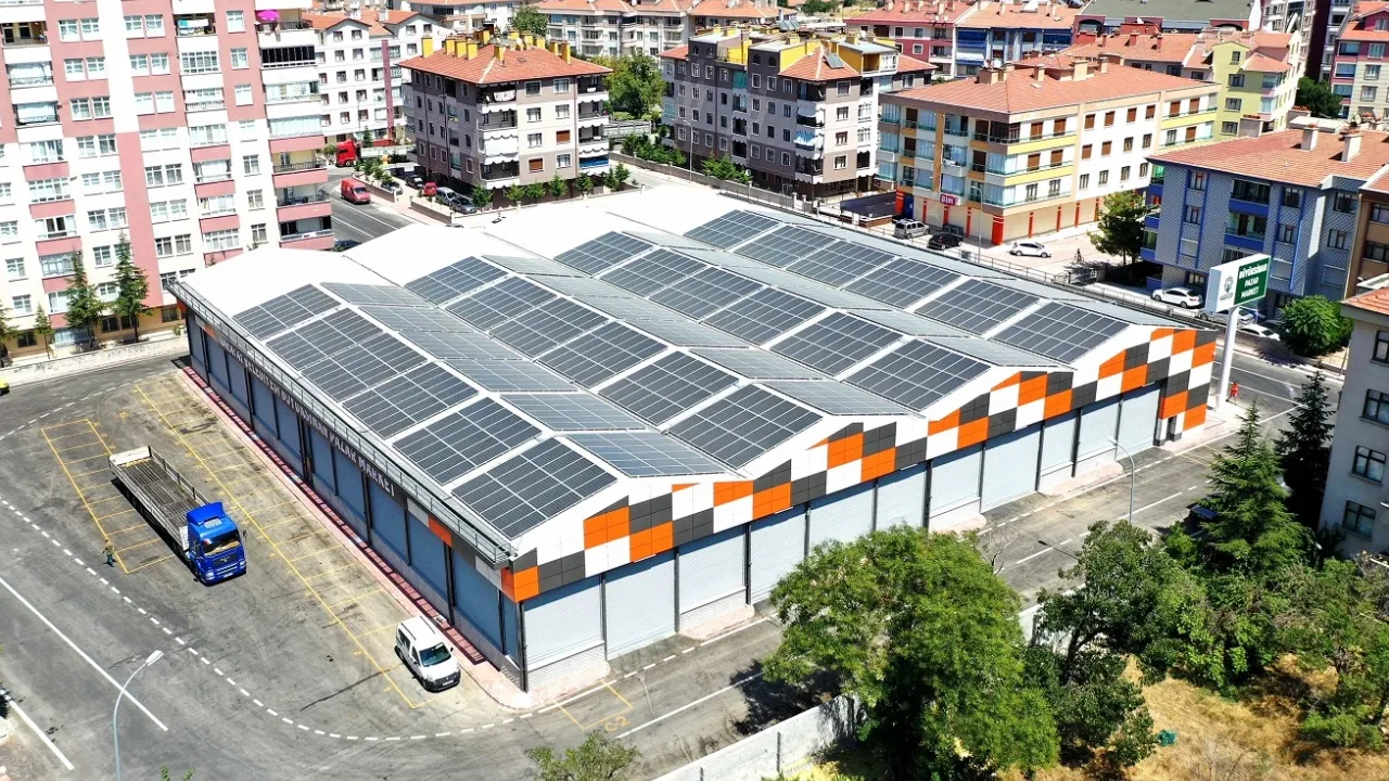 Kalenderhane Mahallesi pazar market çatısındaki 300 kWe santral: Yıllık 450 MWh üretim yapıyor.